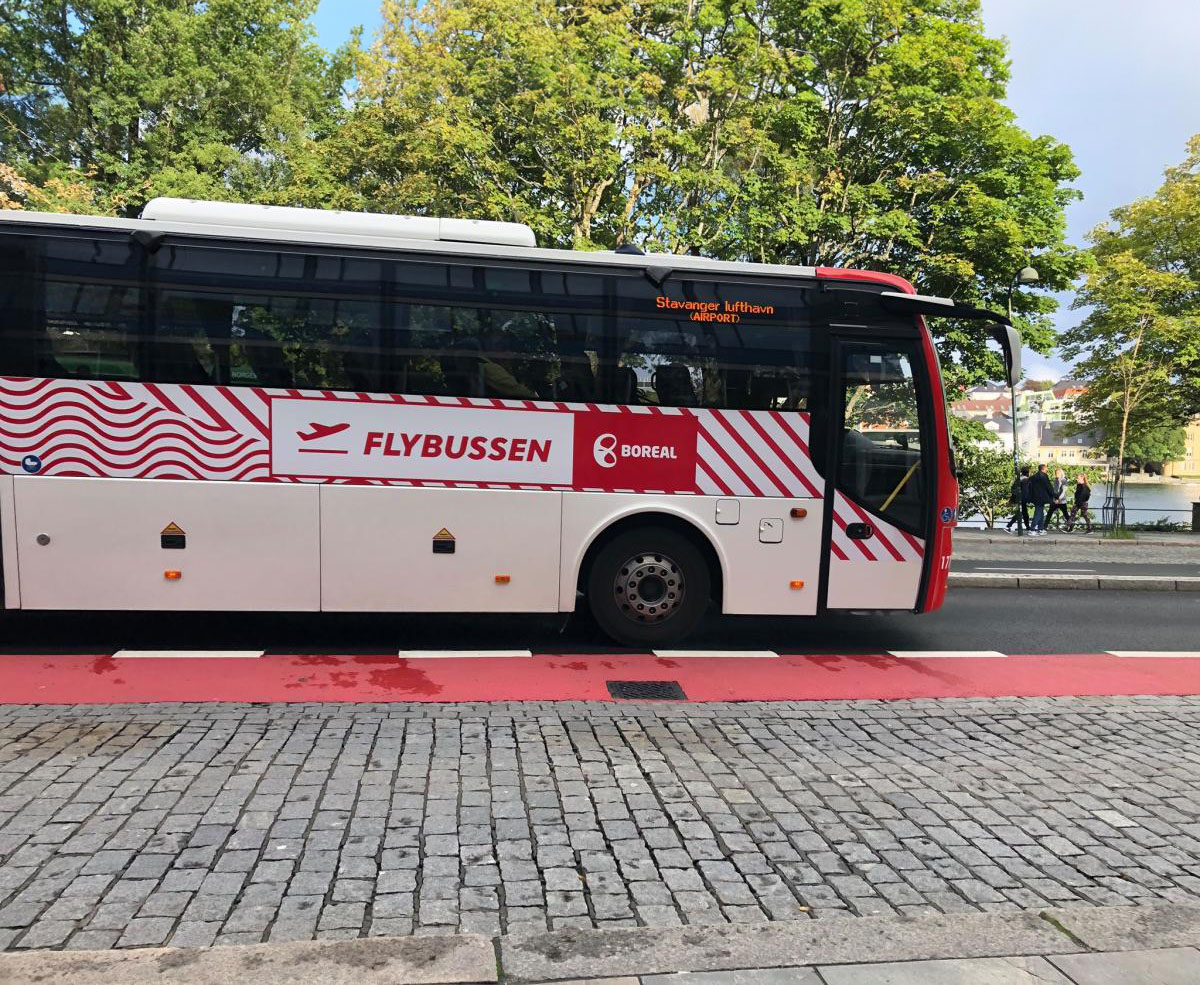 Flybussen tar 18 minutter til Stavanger Forum området. Avgangene som går 00:00 (hver time) og 00:20 går forbi Forum området.